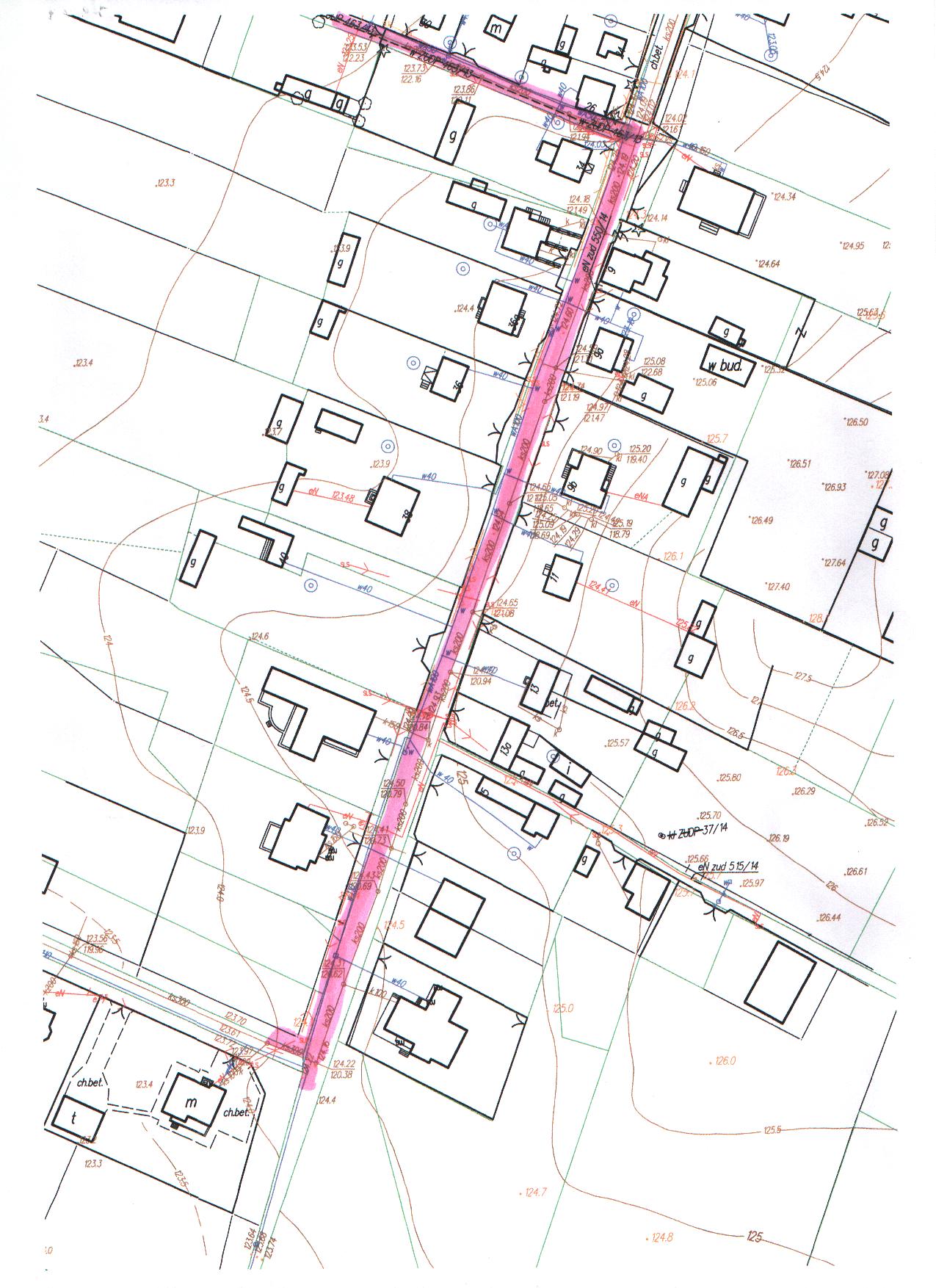 10) mapę ewidencyjną z oznaczeniem zakresu robót i wykazem właścicieli nieruchomości z naniesioną (na czerwono) zajętością terenu pod projektowaną drogę,