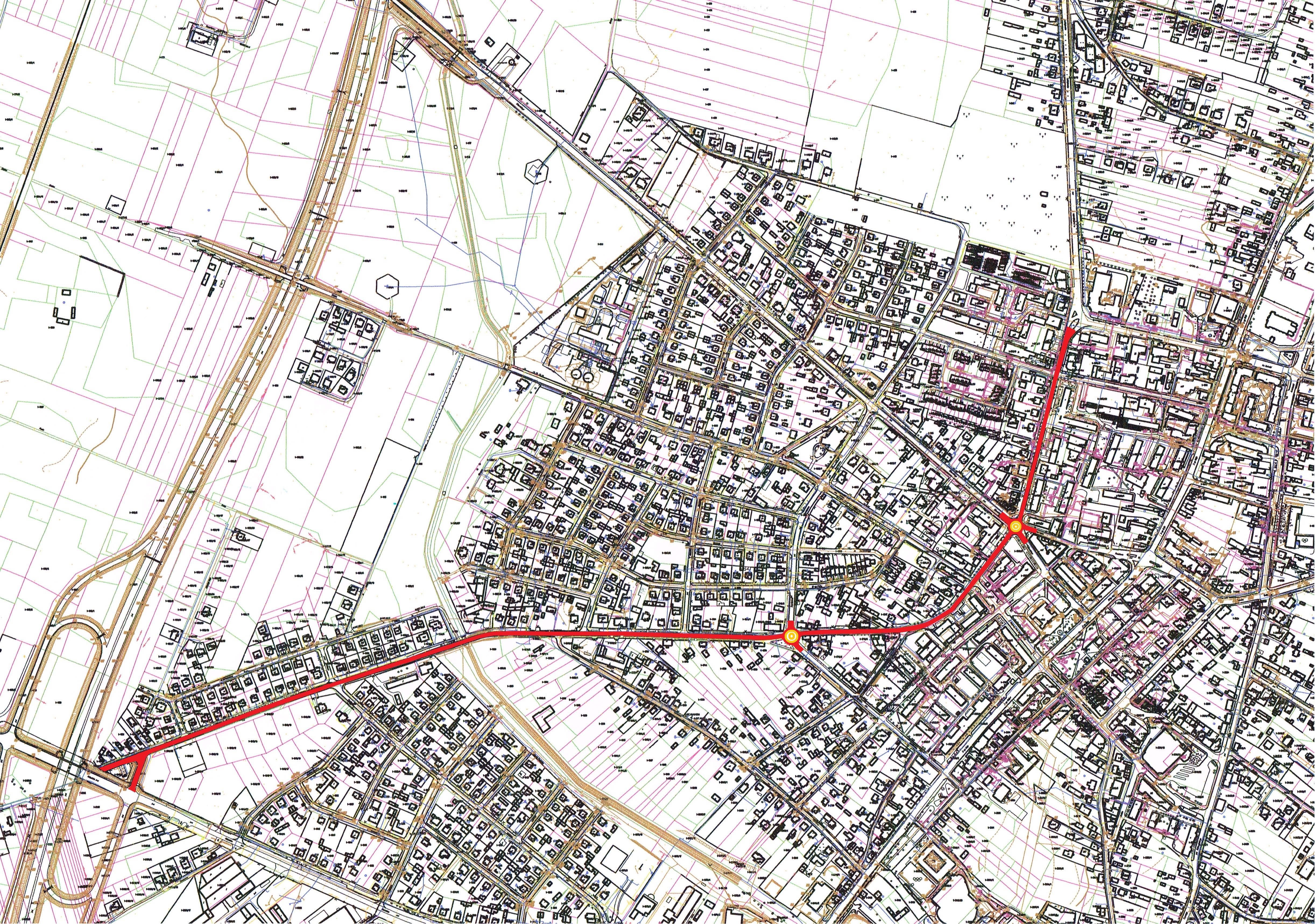 - wykonanie dokumentacji geodezyjnej w zakresie przygotowania do uregulowania stanu prawnego gruntów tj.: wydzielenia pasa drogowego, dokonania podziałów geodezyjnych.