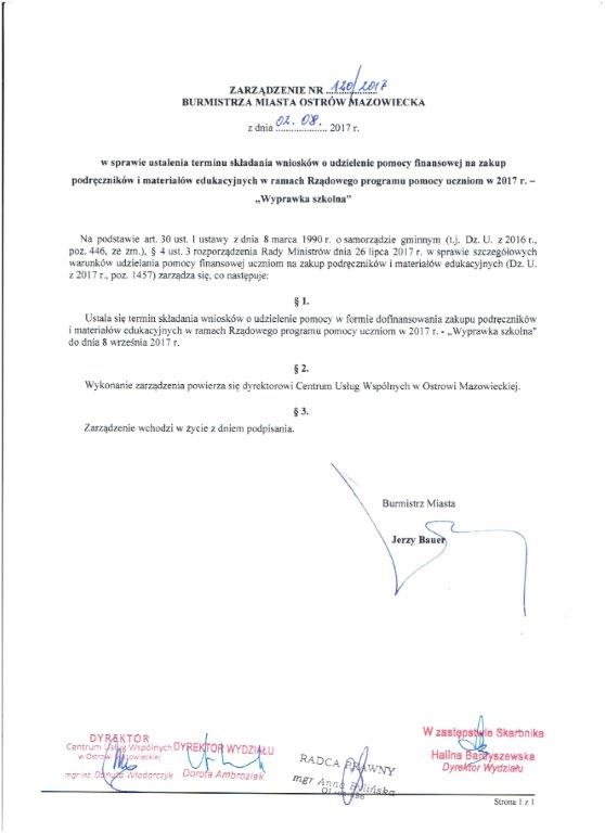 - Zarządzenie Burmistrza Miasta Ostrów Mazowiecka