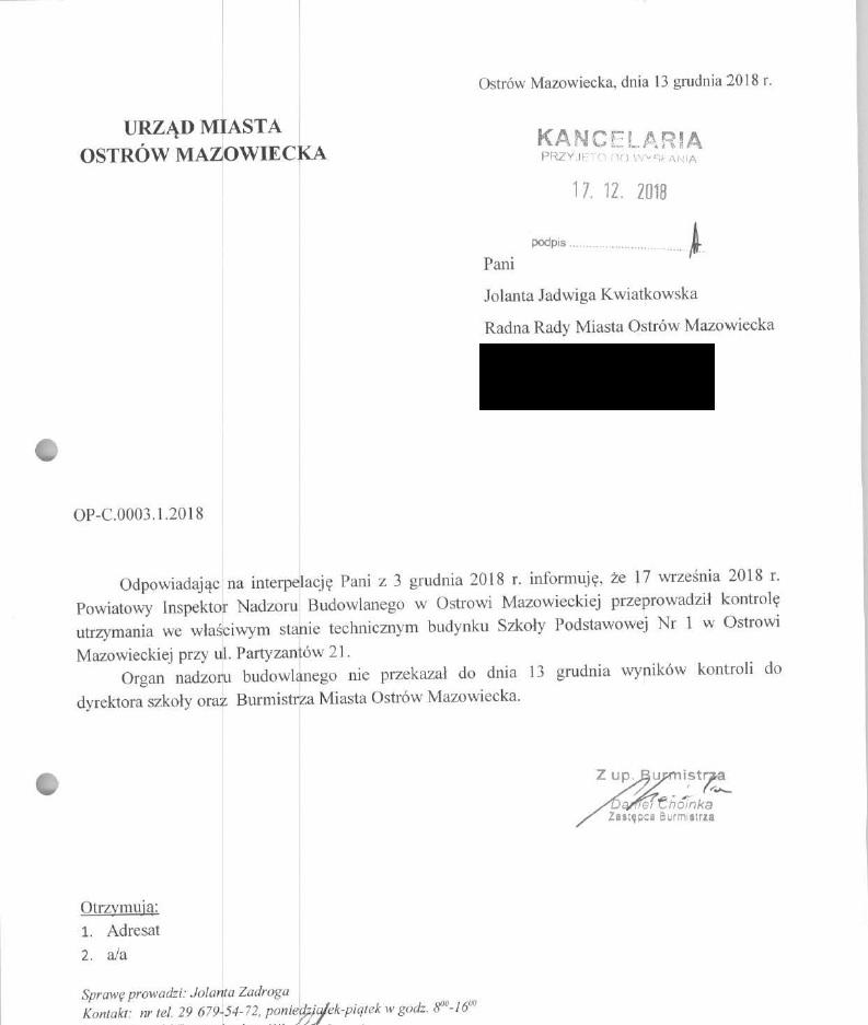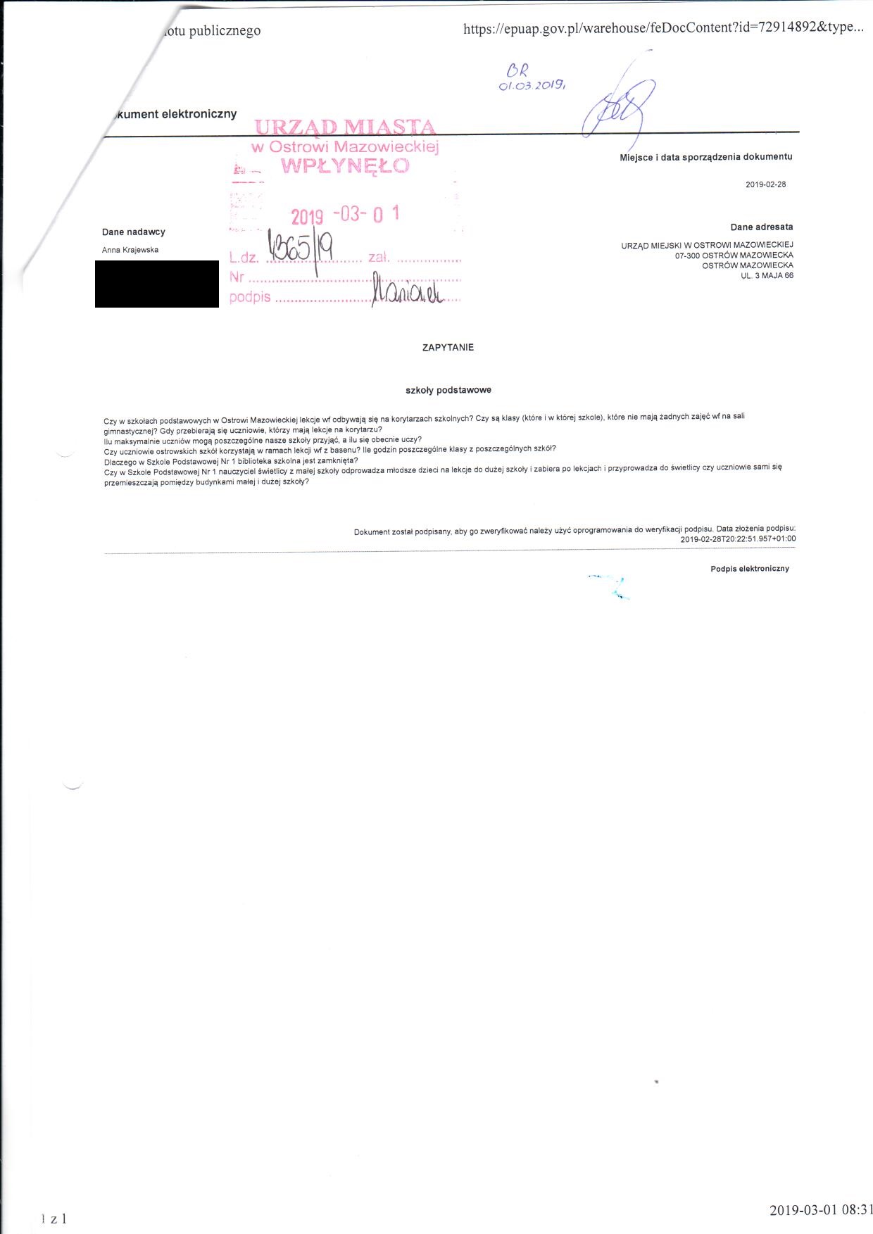 dot. działalności szkół podstawowych w mieście Ostrów Mazowiecka