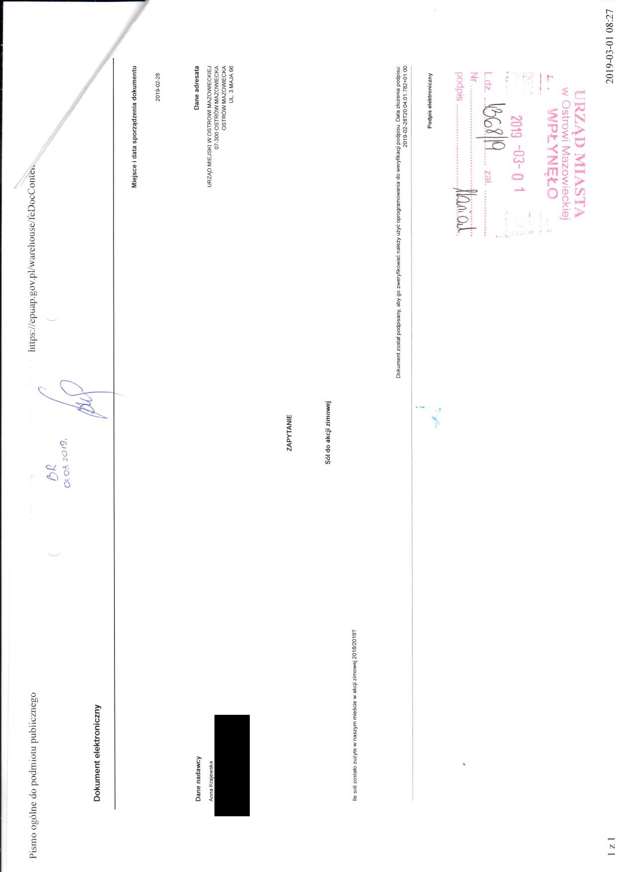 dot. ilości soli przeznaczonej do akcji zimowej 2018/2019